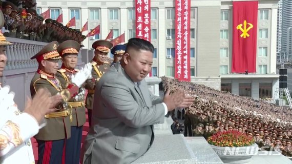 [서울=뉴시스] = 북한 조선중앙TV는 김정은 북한 국무위원장이 11일 조선노동당 창건 75주년 경축 열병식 참가자들과의 기념사진을 촬영했다고 12일 보도했다. 사진은 기념촬영에 앞서 김정은 위원장이 참가자들에게 손을 들어 인사하고 있다. (사진=조선중앙TV 캡처) 2020.10.12. photo@newsis.com[서울=뉴시스] 박준호 문광호 기자 = 국가정보원은 북한 김정은 국무위원장이 수령만 하던 현장지도의 비중을 낮추고 정책지도에 주력하는 쪽으로 통치 방식에 변화를 주고 있고, 김여정 노동당 정치국 후보위원도 국정 전반에 관여하며 책임감이 커진 사실을 확인했다.